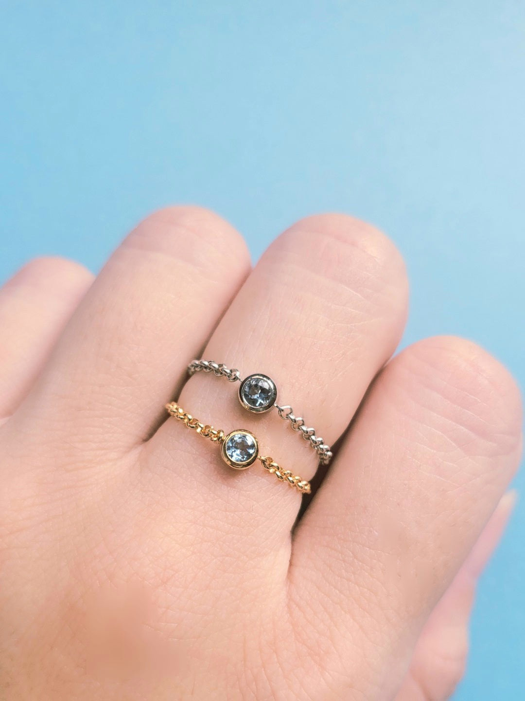 アクアマリン一粒をシンプルにあしらったチェーンリングです。