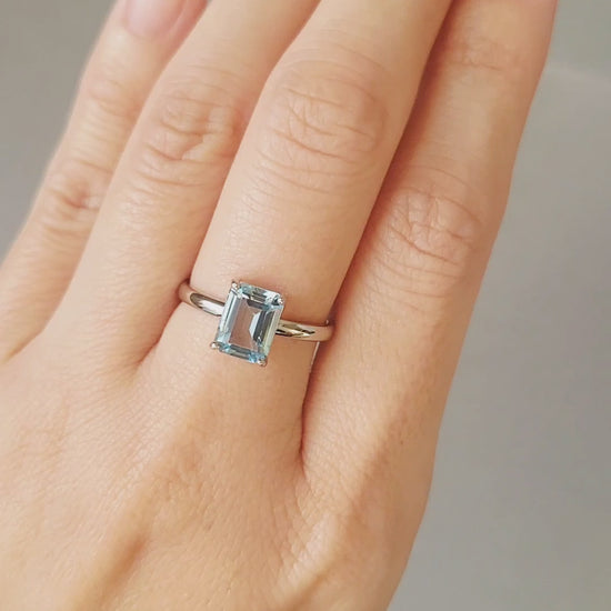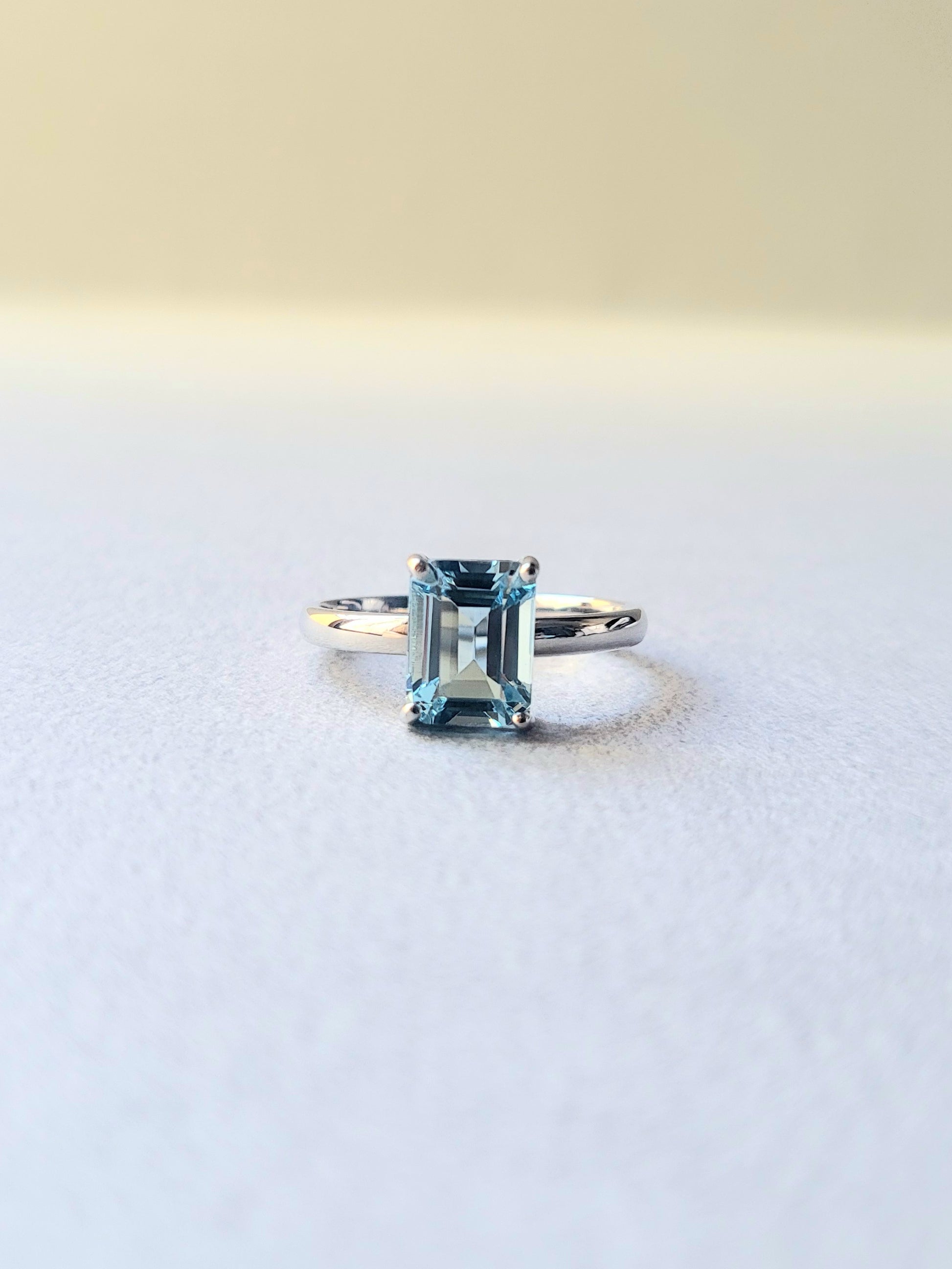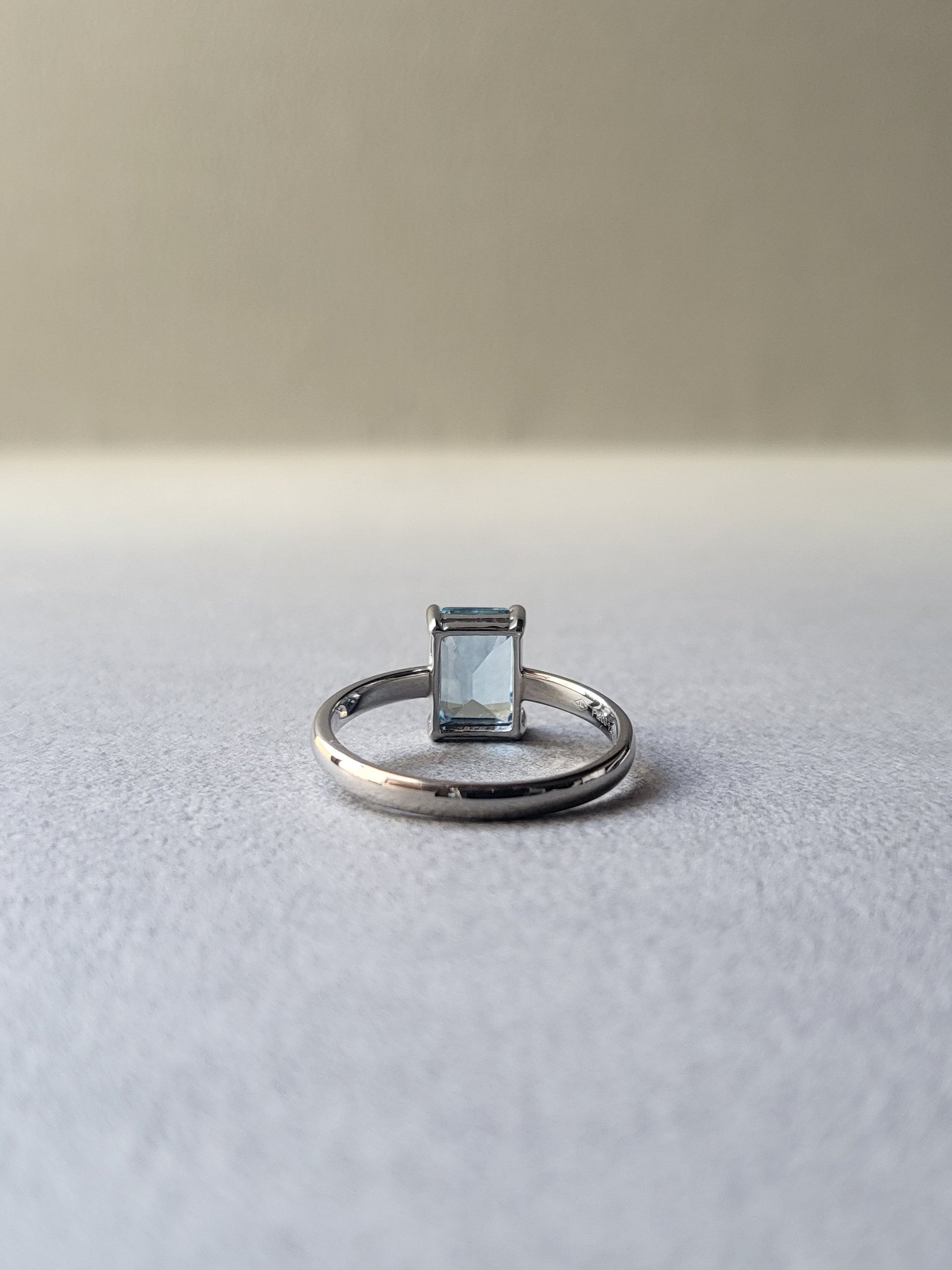 エシカルアクアマリンエメラルドカットリング(Pt)