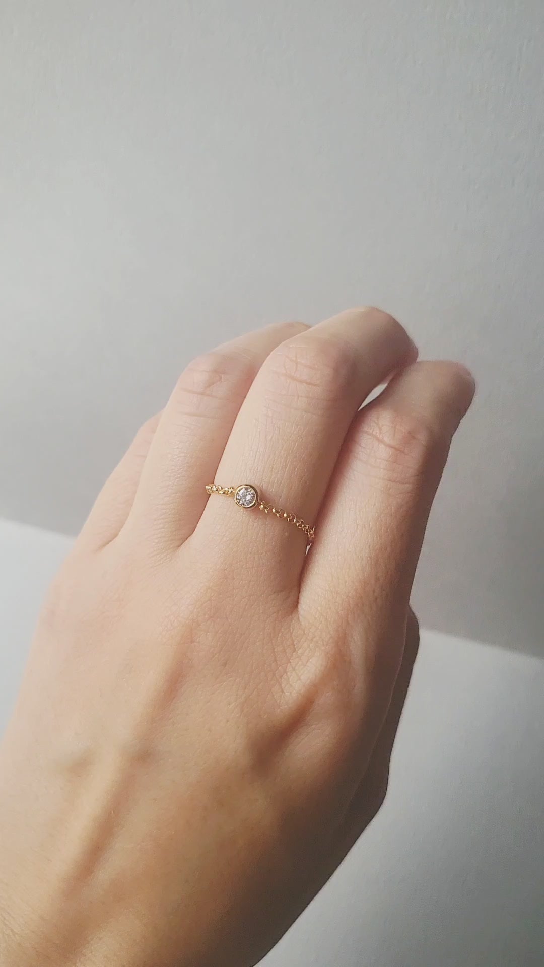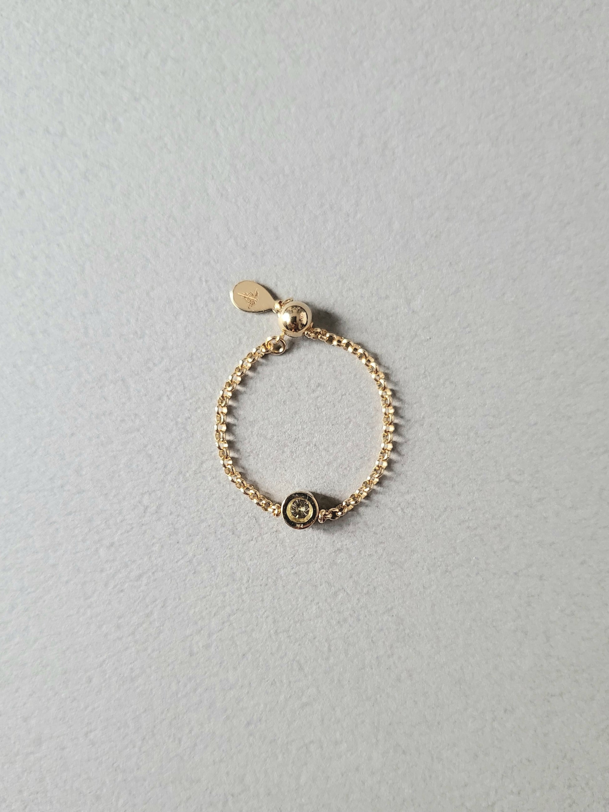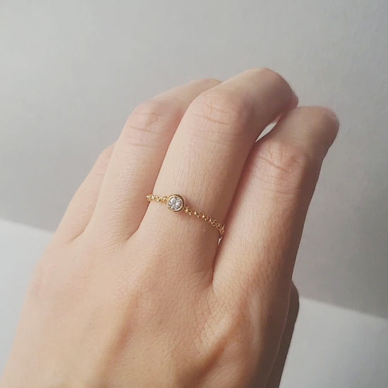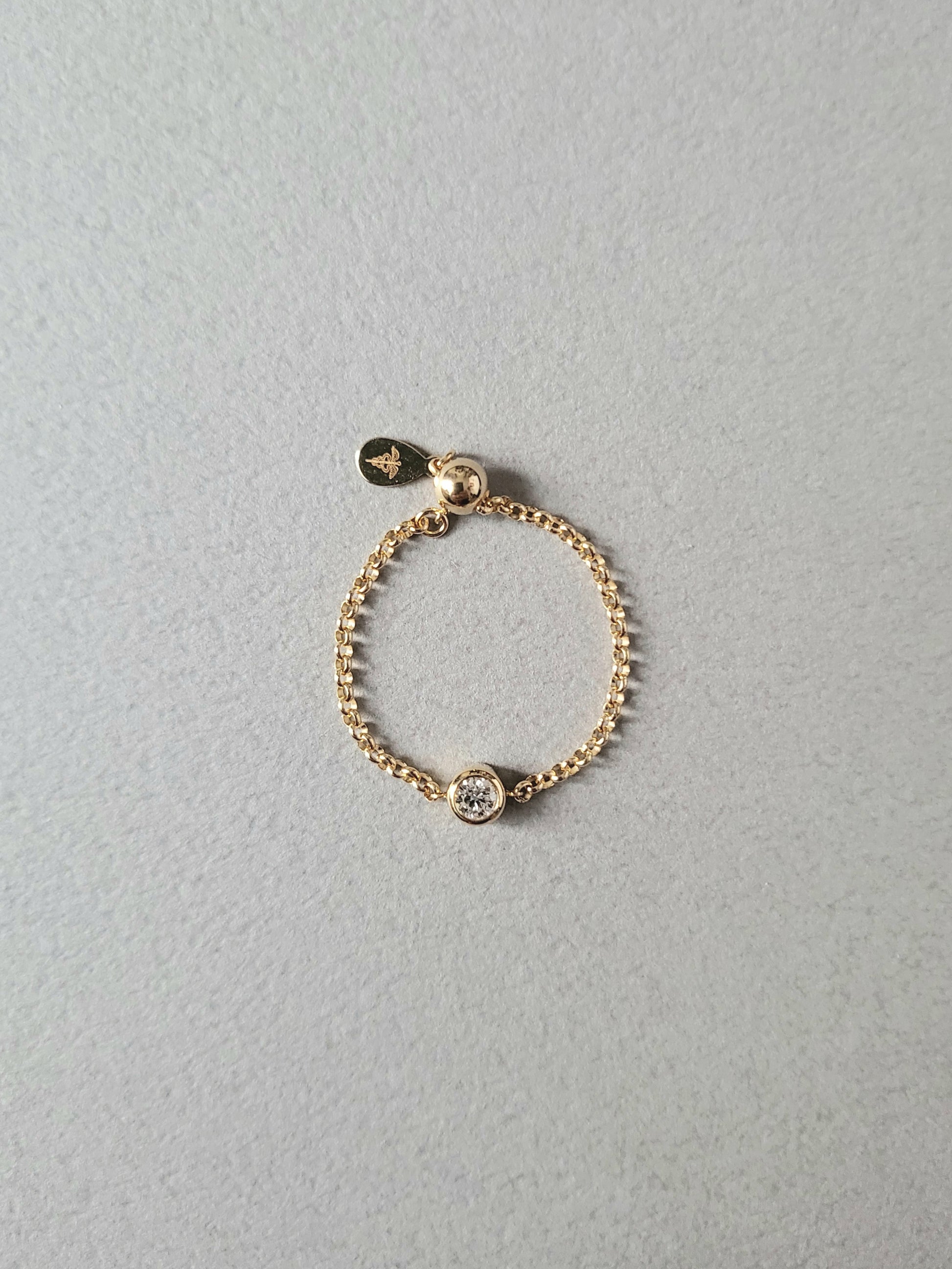 0.1ctのダイヤモンド一粒をシンプルにあしらったチェーンリングです。