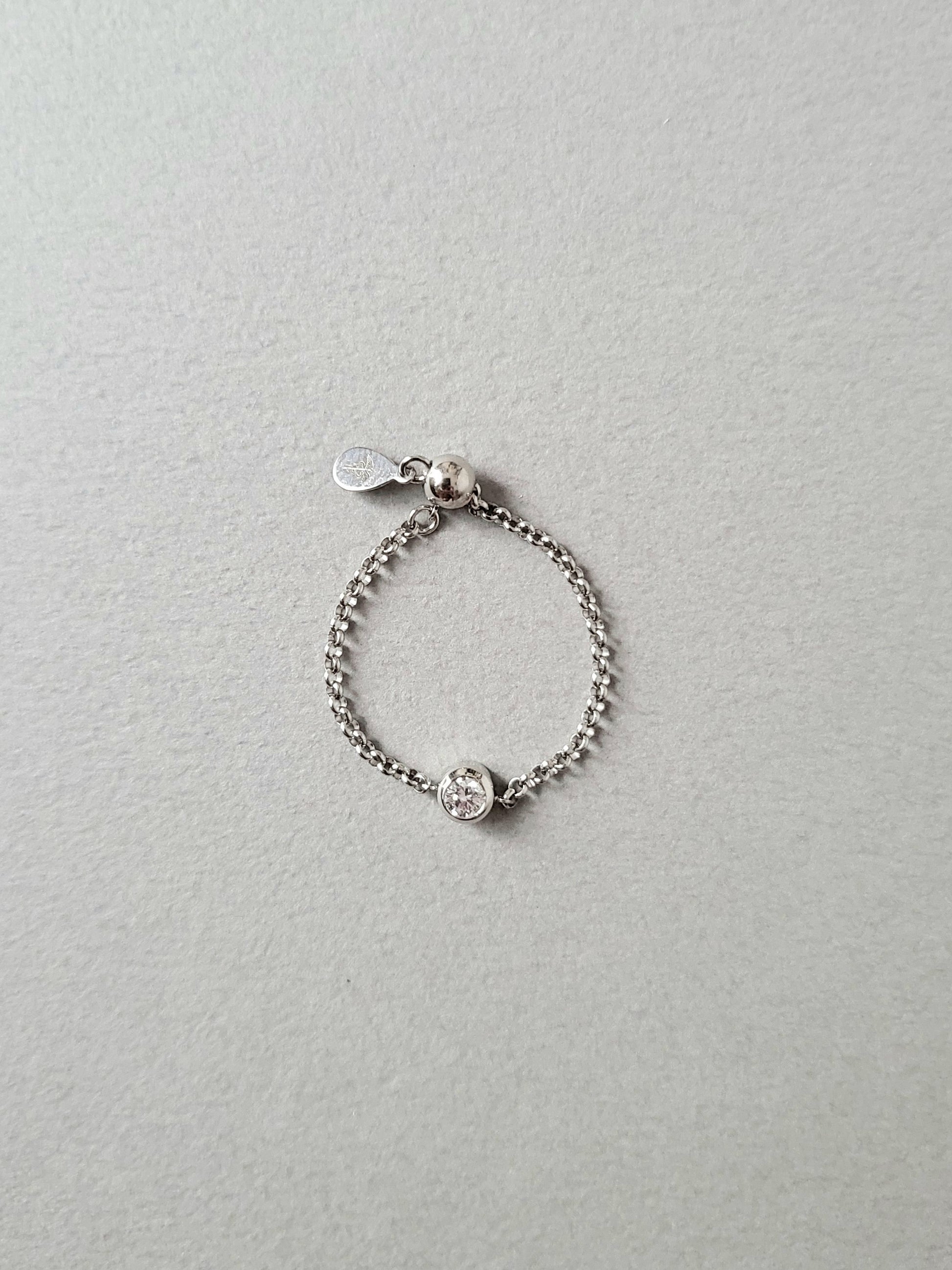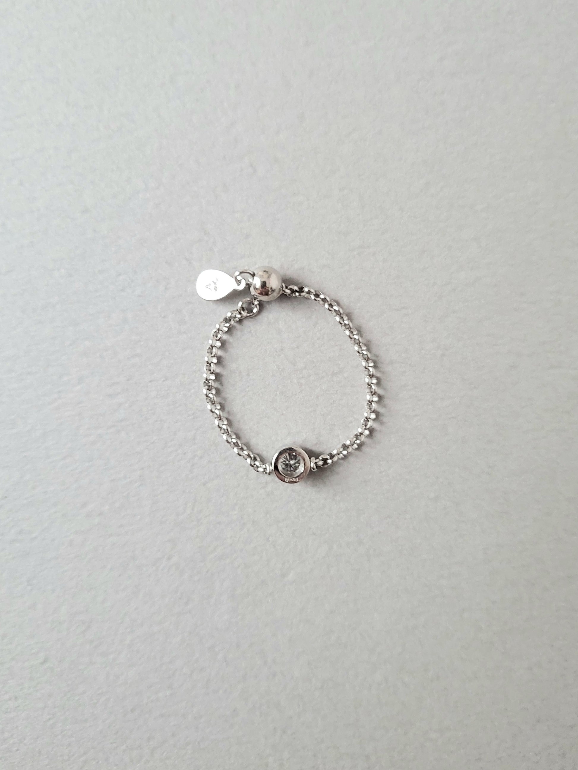 0.1ctのダイヤモンド一粒をシンプルにあしらったチェーンリングです。