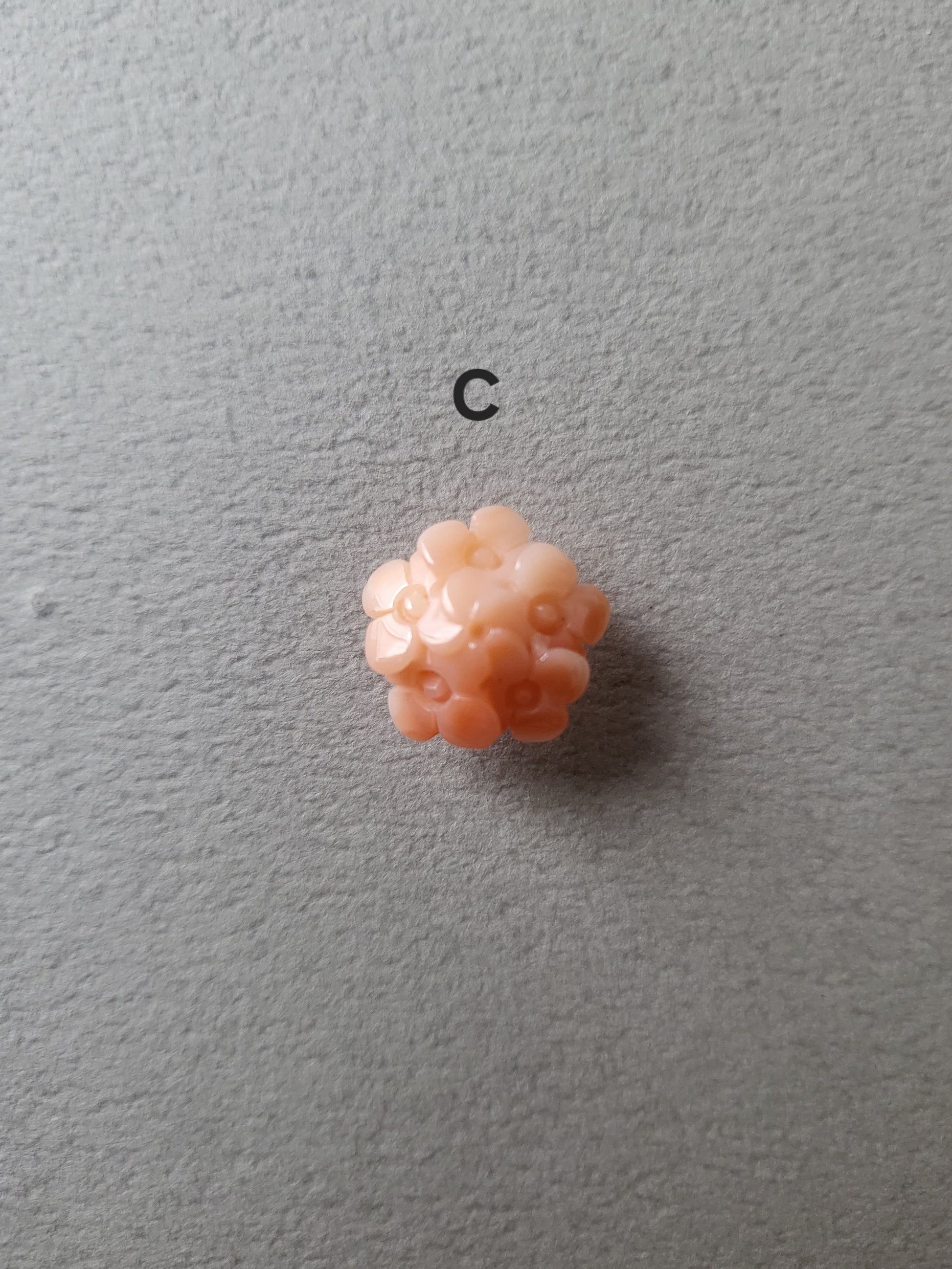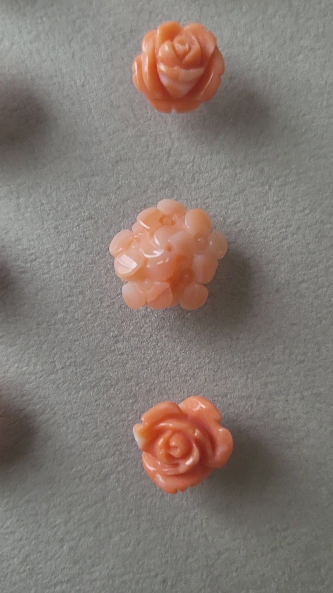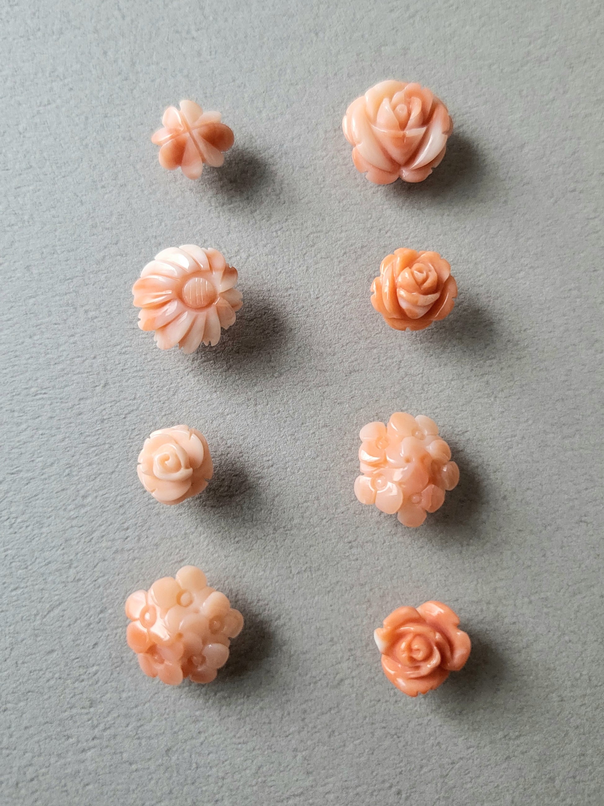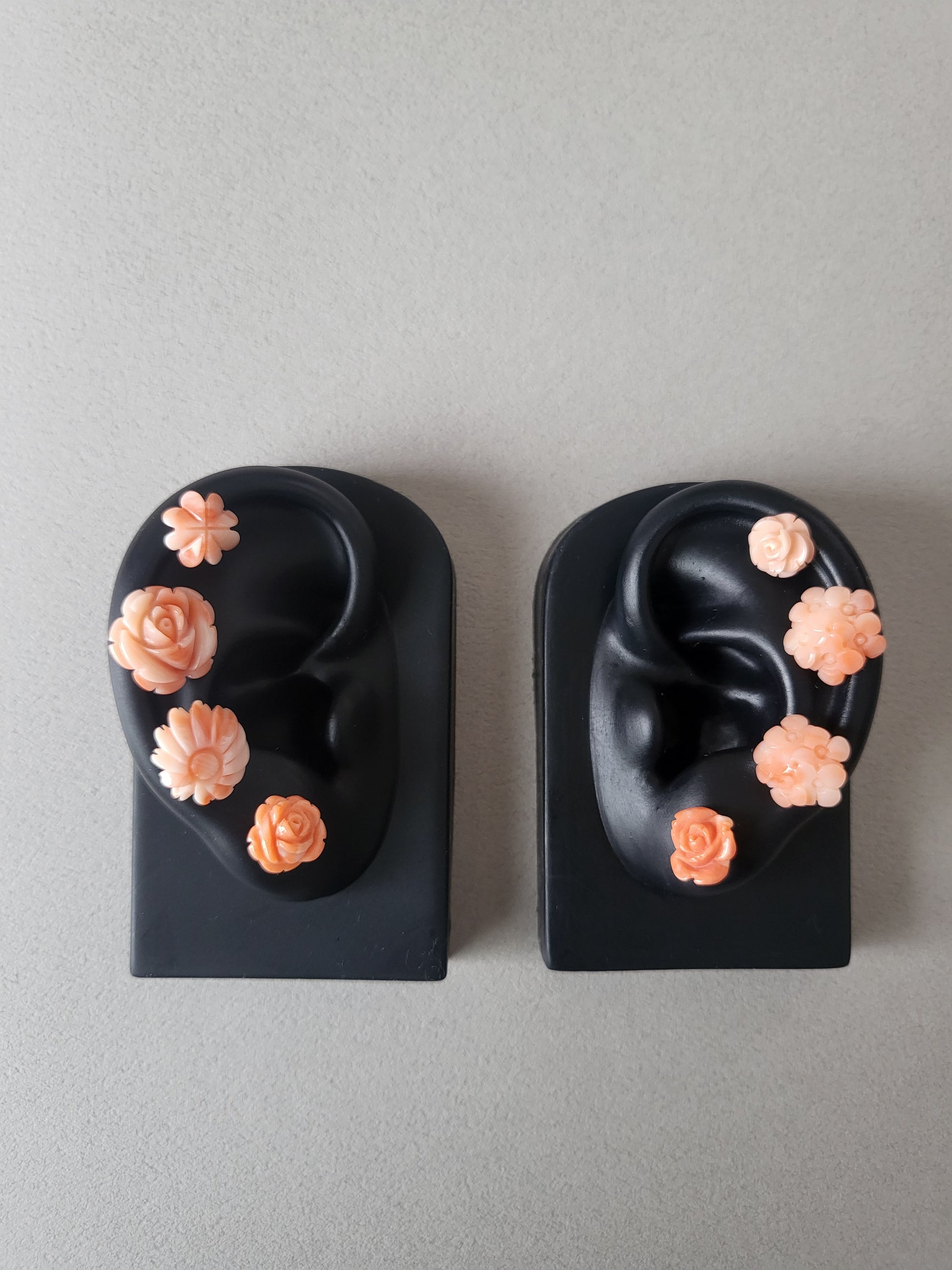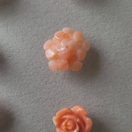 ヴィンテージのサンゴカーヴィングを、プラチナでスタッドピアスに仕立てました。コロンと小さく、ひとつでつけても複数でつけても良いサイズ感です。